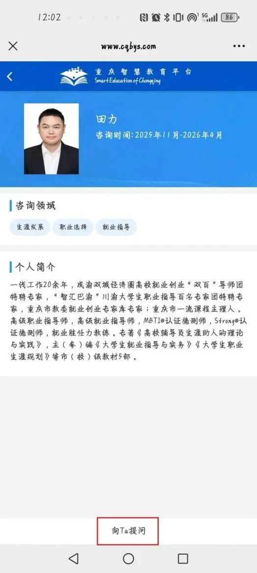 在导师个人页面,点击 “向Ta提问”。
