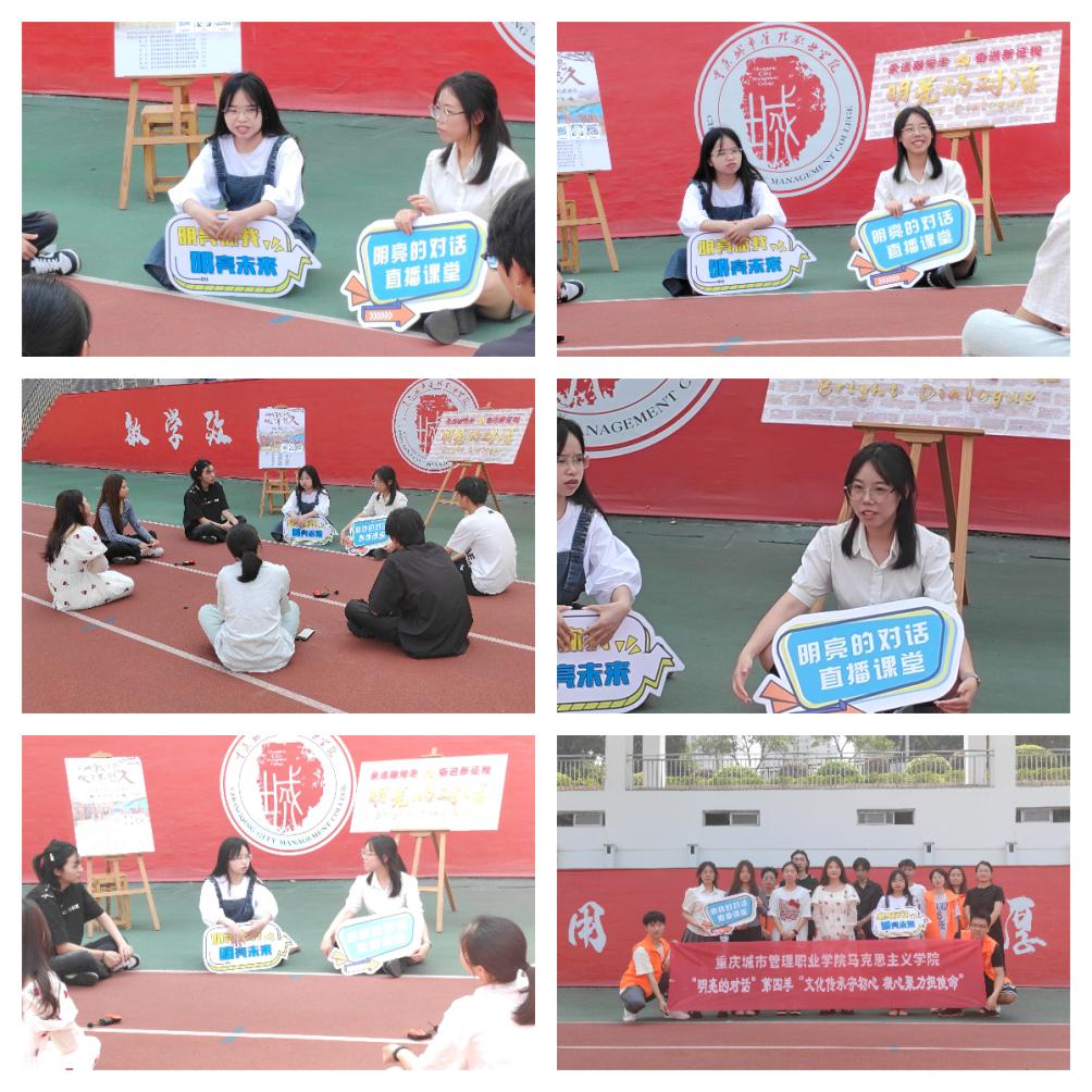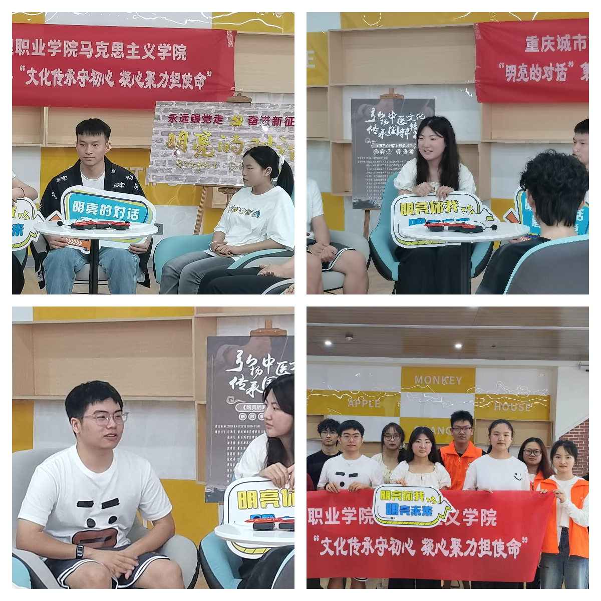 为进一步发挥思政课立德树人关键课程的引领作用,团结凝聚青年学子在弘扬重庆优秀传统文化中积极作为,5月18日到6月30日,马克思主义学院直播课堂《明亮的对话》第四季继第1集“走进千年古镇  探索传统文化魅力”播出后,陆续开展了“丝丝缝韶华 针针夺天工”“听山歌嘹亮 叹千年悠远”“看重庆文化 见川剧之美”“传承国粹精神  弘扬中医文化”4集直播课。《明亮的对话》直播课堂团队与重庆优秀传统文化传承人携手,讲好新时代重庆文化故事,与屏幕前的观众一起感受重庆优秀传统文化之美,引领更多青年自主自觉传承和弘扬重庆优秀传统文化。课堂同时在抖音、哔哩哔哩、超星课堂等多个平台同步直播。
