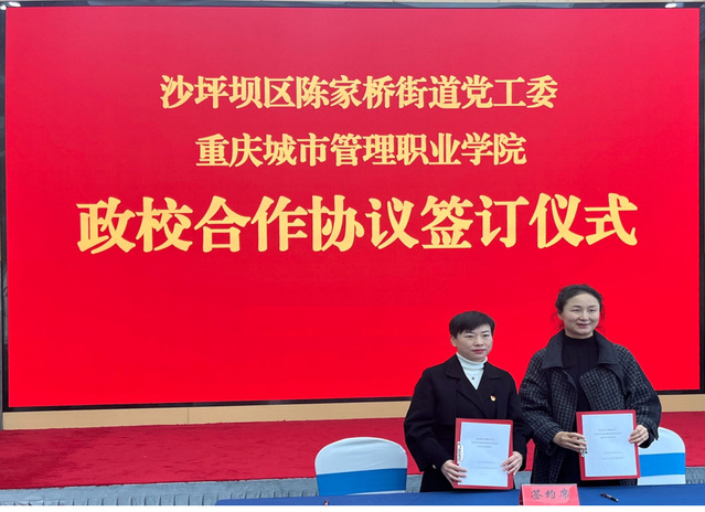 为深入推进政校融合,进一步提升人才培养质量,1月8日,马克思主义学院与陈家桥街道办事处正式签订政校合作协议。陈家桥街道党工委书记王泳、街道党工委委员兼组织委员刘代薇、街道党的建设办公室负责人赵良妍、重庆城市管理职业学院马克思主义学院副院长张媛艺、党务工作专业带头人张传忠参加签约仪式。