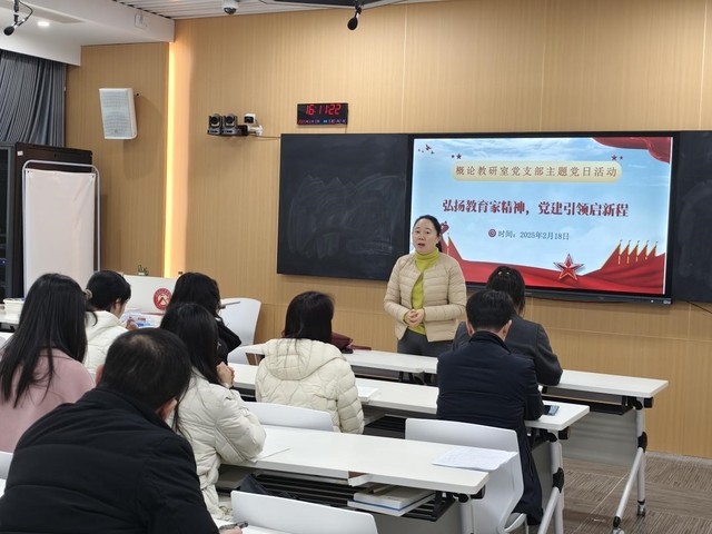 为大力弘扬教育家精神,牢记为党育人、为国育才的初心使命,树立“躬耕教坛、强国有我”的志向和抱负,218日,概论教研室党支部在马克思主义学院智慧教室一开展2月组织生活会暨“弘扬教育家精神,党建引领启新程”主题党日活动,会议由党支部书记黄燕主持。