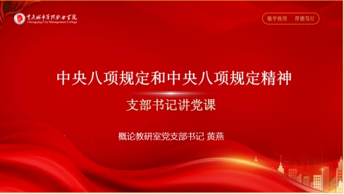 随后,支部开展“深入贯彻中央八项规定精神  筑牢廉洁自律防线”主题党日活动。首先黄燕书记给支部党员讲授了题为“中央八项规定和中央八项规定精神”的党课。她对中央八项规定和中央八项规定精神的内涵进行了区分,对违反中央八项规定精神的具体表现做了详细讲解,进一步加强了党员同志对中央八项规定精神的认识。其次,参会党员对中央八项规定精神的学习心得进行交流讨论,并纷纷表示要不断提高政治站位,以深入贯彻中央八项规定精神学习教育为契机,始终坚持严的基调,持之以恒正风肃纪反腐,以优良作风保障教育教学事业高质量发展。