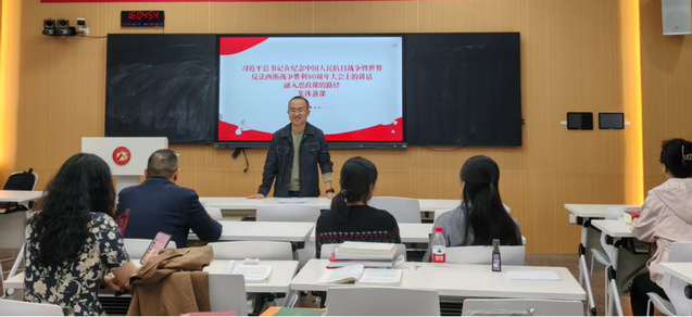 为深入学习贯彻习近平总书记重要讲话精神,推动党的创新理论有机融入思政课教学,10月21日,中国近现代史纲要教研室与毛泽东思想和中国特色社会主义理论体系概论教研室在马克思主义学院智慧教室联合开展集体备课活动。活动由纲要教研室主任王博主持。