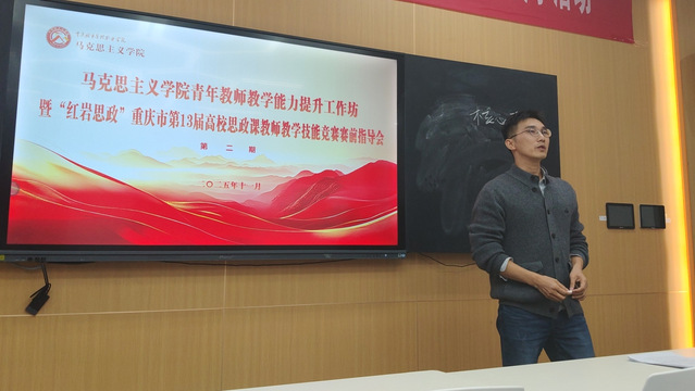 为深入学习贯彻习近平总书记关于思政课建设的重要论述,持续提升青年教师教学能力,助力备战“红岩思政”重庆市第13届高校思政课教师教学技能竞赛,11月11日,马克思主义学院在智慧教室举办青年教师教学能力提升工作坊(第二期)暨赛前指导会。学院领导班子成员、教研室主任、思政课骨干教师及参赛教师参会。