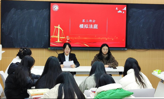 活动以模拟法庭拉开序幕。同学们化身法官、辩护人、原告被告方等角色,围绕精心设计的校园借贷法律案例模拟庭审。其中,“法官”沉稳断案,“双方律师”逻辑清晰地交锋,现场氛围庄重有序。这种沉浸式体验让在场学生直观感受到法律的严肃性与公正性,也深刻认识到宪法和法律对个人权益的保障作用,进一步增强了法治意识。