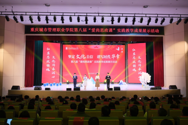 为深入贯彻落实党的二十届四中全会精神,充分发挥思政课育人主渠道作用,推动新时代高校思政课高质量发展,12月9日,我校在学术交流中心多功能厅举办第八届“爱尚思政课”实践教学成果展示活动。重庆科学城树人思贤小学校、重庆科学城石板中学校、重庆市立信职业教育中心、重庆城市职业学院、重庆三峡医药高等专科学校等多所院校师生代表,以及我校在家校领导、科级及以上干部、思政课教师、辅导员以及相关师生代表等,共700余人到场观看。