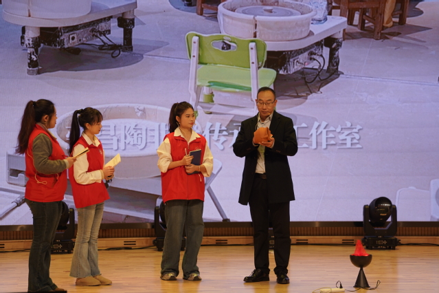 幕九《窑火千年 青春铸陶》师生共同深入荣昌陶博物馆等实地调研,探寻传承与弘扬传统文化精髓,再现了原始钻木取火与汉代市集铸陶场景,由思政教师现场深刻解读,将工匠精神具象化呈现,增强大学生文化自信与责任感。