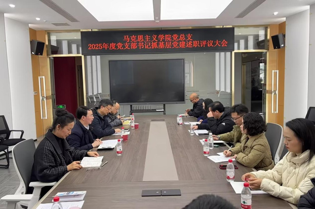 1月13日,马克思主义学院在致用楼学院会议室召开2025年度党支部书记抓基层党建述职评议会。学院党总支委员、党支部书记与委员及教师代表参加了会议。学院党总支书记喻永均同志主持会议。通识教育学院党总支副书记伏斐列席会议。