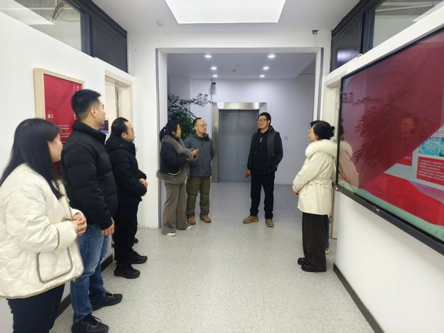 活动伊始,四川美术学院马克思主义学院直属党支部书记王凤英为老师们介绍了学院党建主题展览。通过实地观摩展览中的文字资料、图片展板,调研团队深入了解了川美马院在党建引领、思政育人融合发展等方面的特色做法与丰硕成果。
