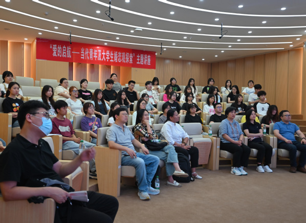 活动中,郭博士以各类婚姻问题为例,从婚恋教育的重要性、正确婚恋观的树立途径、婚恋观调查数据三个方面深入剖析了婚恋价值观、行为模式、文化社交等要素对婚恋质量的影响,引导学生认识婚姻家庭的社会属性本质,鼓励学生正视个人现实需求与情感需要,积极提升自我满意度与幸福感。