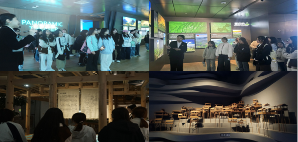 活动中,讲解员带领同学们循着“自然—建筑—战略”的脉络,在展区里开启一场“城市生命与个体生命的对话”。自然遗产展区内,渝东南地区喀斯特地貌的亿万年演化痕迹,让同学们读懂“生命的坚韧”——城市的自然禀赋如同生命的先天基因,是承载一切发展的根基;建筑规划展区里,东水门长江大桥等模型的精巧结构与建造故事,诠释着“匠心即生命的温度”,每一处设计、每一次施工,都是人类用智慧为城市注入的鲜活生命力;战略发展展区的《重庆市国土空间总体规划》动态演示,更让大家看见“生命的共生”——重庆“新时代西部大开发重要战略支点”“内陆开放综合枢纽”的定位,恰是城市生命与无数个体生命同频共振、共同成长的蓝图。参观途中,同学们时而屏息凝视展品,聆听城市“生长”的故事;时而轻声交流感悟,将城市发展的逻辑与自身生命价值的思考相连,在历史与未来的交织中,触摸到“个体生命融入时代发展”的深刻内涵。