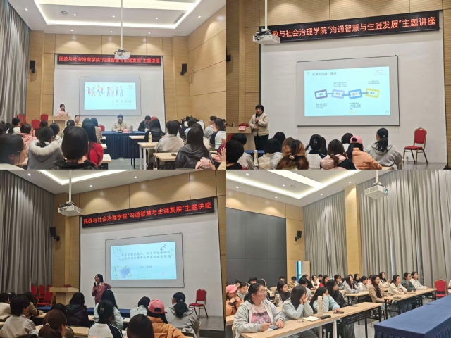 金秋送爽,青春扬帆。为引导大一新生顺利实现从高中到大学的过渡,提升沟通能力,明确发展方向,11月12日,学院在荣昌校区学生活动中心2117举办“沟通智慧与生涯发展”专题讲座。本次活动旨在帮助新生快速融入校园生活,搭建和谐人际网络,明晰学业与职业路径,为大学阶段的全面发展奠定坚实基础。学院党总支副书记李国英与师生代表共80余人参与。