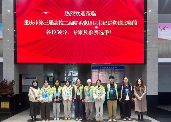 12月4日至5日,重庆市第三届高校二级院系党组织书记讲党建比赛在我校顺利举办。学院党总支在校党委组织部的统筹指导下,牵头承担本次比赛的全流程会务工作,学院师生以专业、热忱的志愿服务,为赛事圆满落幕筑牢保障根基。