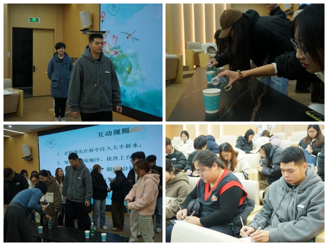 互动环节将现场变为一场生动的“品格实践课”。“左手画方,右手画圆”让同学们在简单任务中体验专注力的重要性;“小组接力倒水”则于协作中传递节奏感与责任意识;情景模拟更引导大家反思,在纷繁事务中如何以自律保持清醒、以专注提升效能,真正将品格修养落于实处。