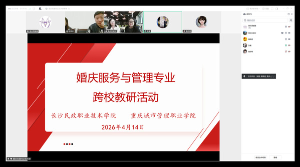 为促进不同学校间的专业交流与合作,4月14日,我院婚庆服务与管理专业与长沙民政职业技术学院婚庆服务与管理专业线上开展跨校教研活动,活动由我院婚庆服务与管理专业教研室主任刘慧玲主持。