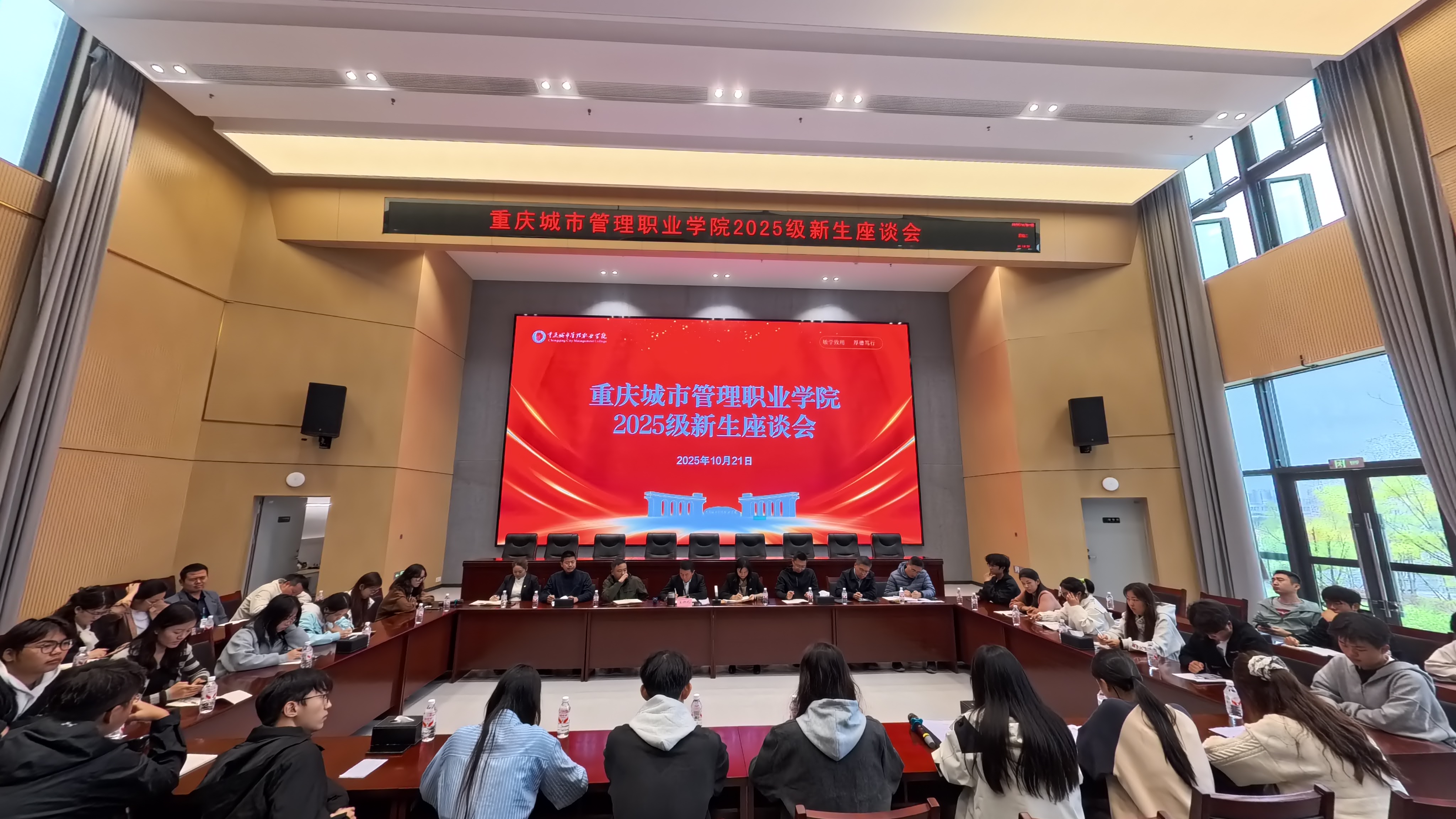 10月21日,我校2025级新生座谈会在荣昌校区办公楼F101会议室举行,荣昌校区管委会、各二级学院管理办公室负责人、中交路建(重庆)建设发展有限公司相关管理人员及各二级学院学生代表参加。