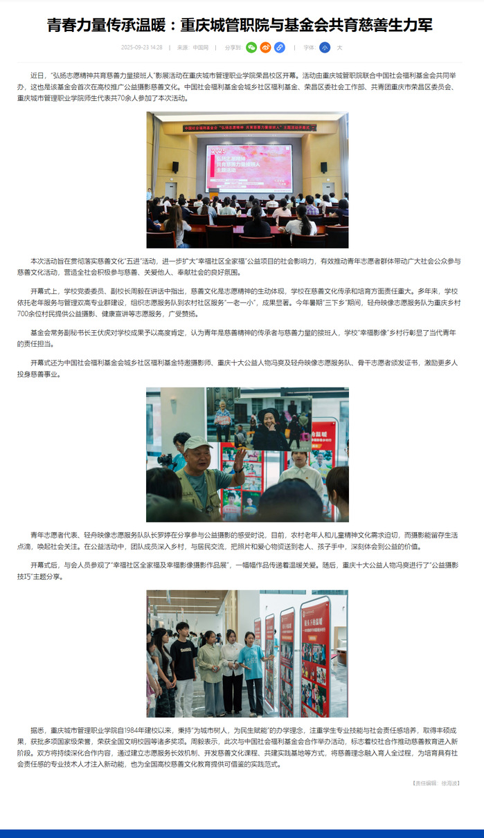 [中国网]青春力量传承温暖:重庆城管职院与基金会共育慈善生力军