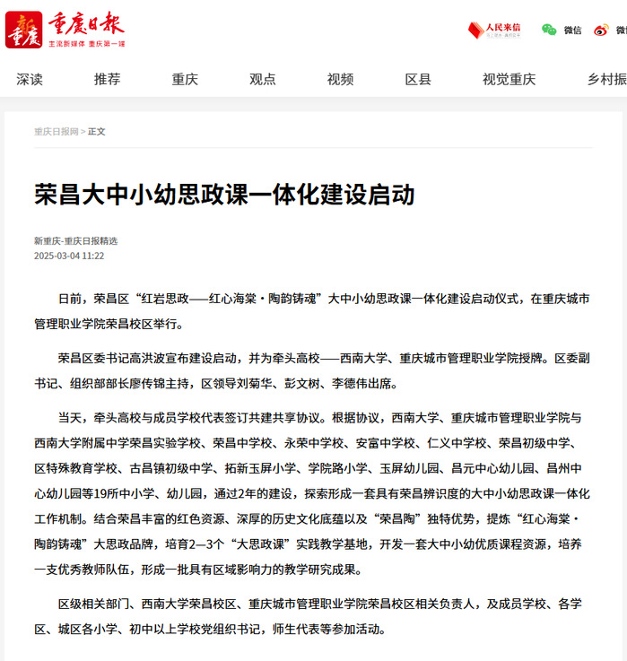 [重庆日报]荣昌大中小幼思政课一体化建设启动