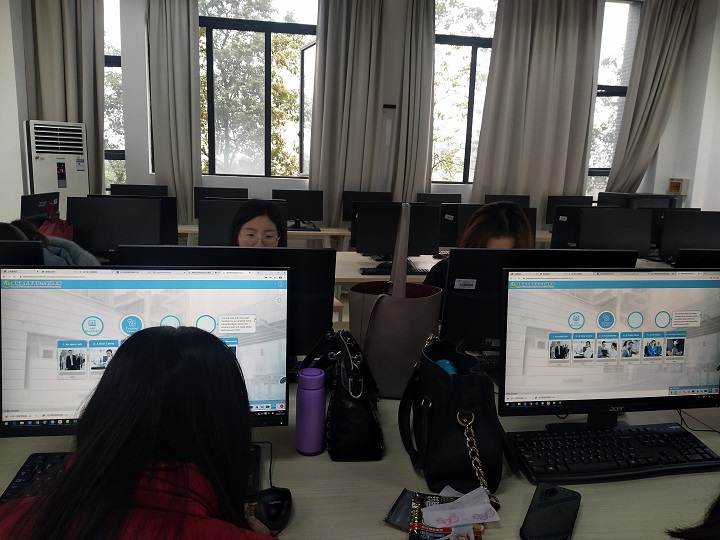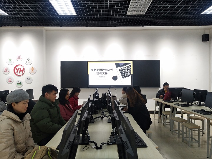 12月22日,福建亿学教育科技集团有限公司工程师林俊杰于H栋213对商务英语教研室全体专任教师进行商务英语教学软件培训。