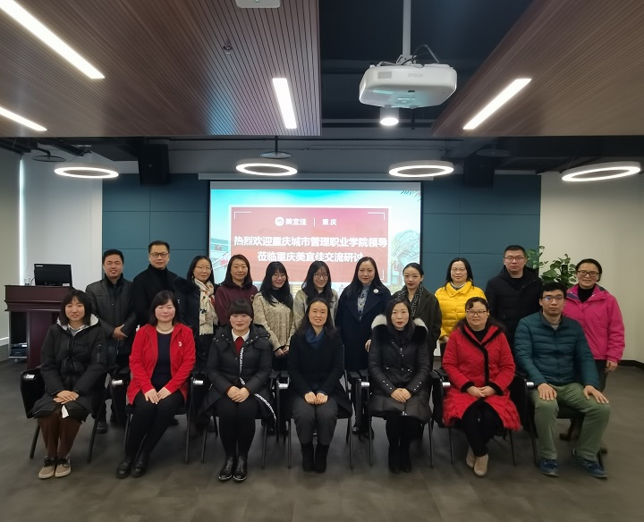 为深入了解行业企业发展趋势,推进产教融合,促进校企“双元”合作育人,2021年1月21日,商学院连锁经营管理专业和市场营销专业教学团队在党总支副书记唐鸿铃带领下赴连锁百强企业美宜佳调研,美宜佳重庆有限公司人力资源部部长孙玉、培训部部长杨朗及管理团队参与调研。