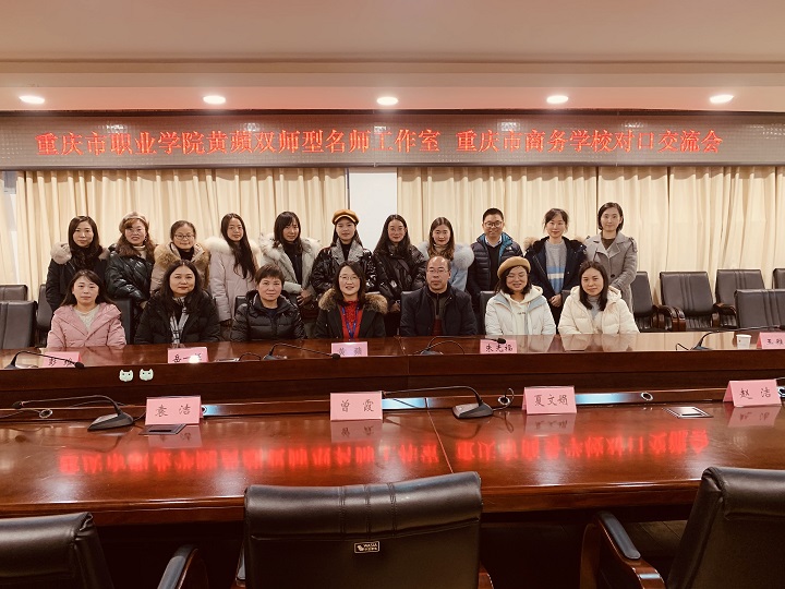 2021年1月20日下午,重庆市职业院校黄蘋双师型名师工作室对口支援的重庆市商务学校来我校进行交流座谈。出席交流座谈会的有黄蘋双师型名师工作室的成员和来自重庆市商务学校的相关老师。