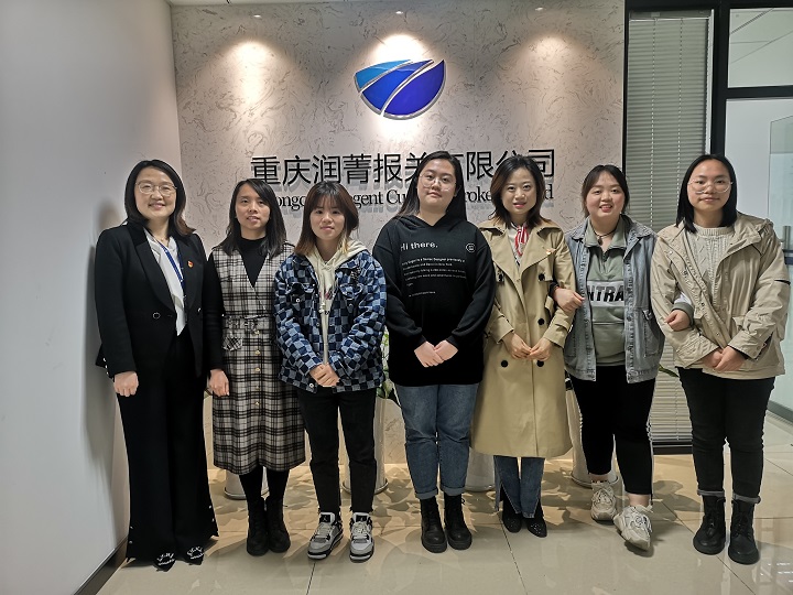 走访重庆润菁报关公司时,在此实习的江超同学正在一旁专注地核对“师父”的单据。江超是我专业18级在档经济困难学生,专业带头人黄蘋老师关切询问该生实习、住宿和待遇问题,了解到该生目前对实习岗位和待遇比较满意,交通及住宿也很方便和舒适。随后,报关专业老师们还走访了重庆宝正达国际物流有限公司等校企合作单位。