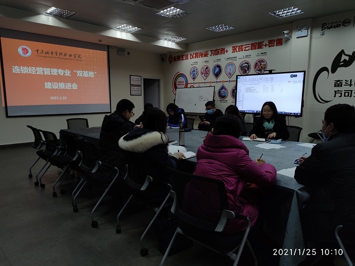 1月25日,连锁经营管理专业在智慧零售产教融合实训基地召开连锁经营管理专业重庆市“双基地”建设项目推进会,“双基地”项目组全体成员参会。
