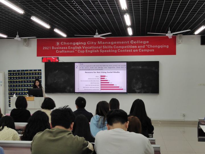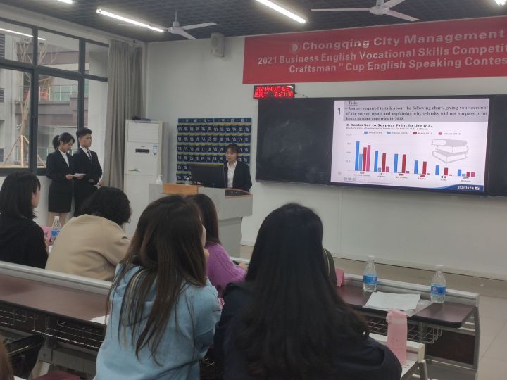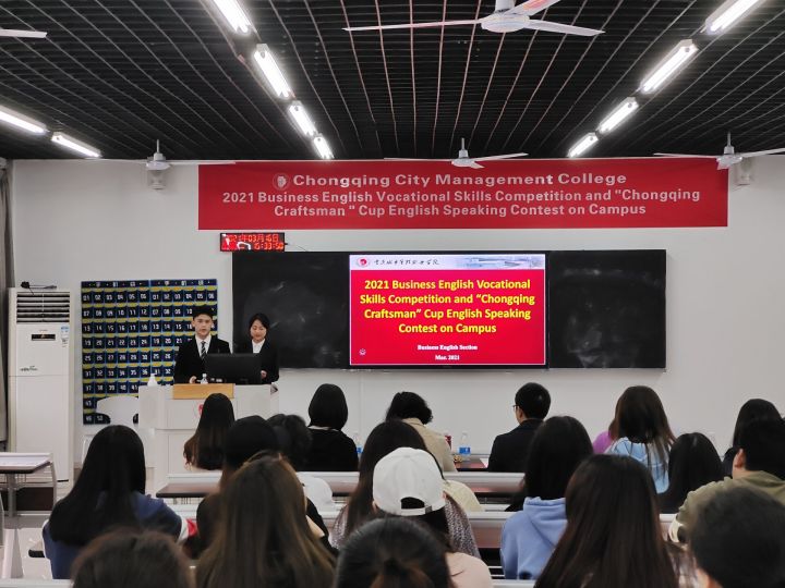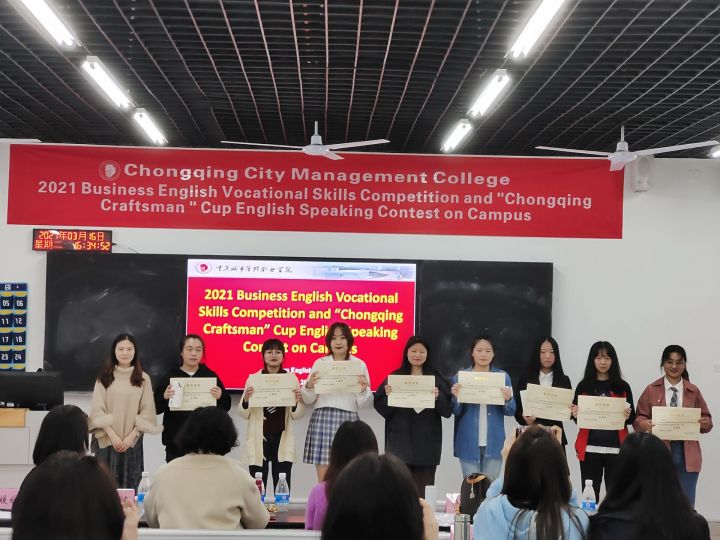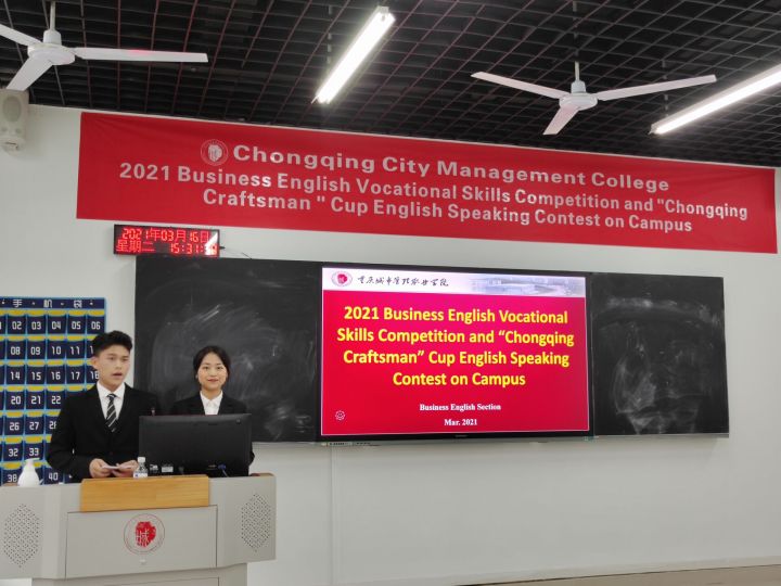 2021年3月16日,商务英语教研室于致用楼C103组织举办了重庆城市管理职业学院商务英语专业学生职业技能竞赛暨巴渝工匠杯英语口语校内选拔大赛。