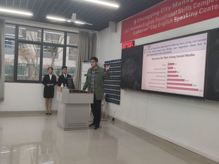 此次大赛展现了商务英语专业学生英语口语表达能力,有利于激发学生英语学习的积极性,进一步推进商务英语专业人才培养模式改革,继而深化重庆城市管理职业学院商务英语专业教育英语课程教学改革。