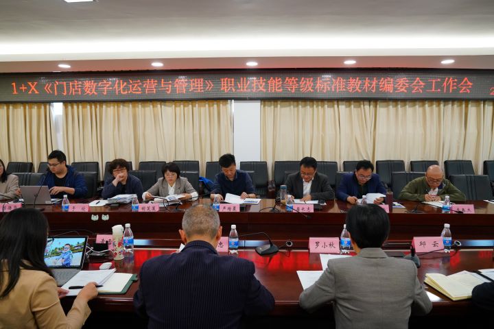 深入贯彻落实习近平总书记关于职业教育工作的重要指示和全国职业教育大会精神,加快构建现代职教体系,促进书证融通,形成国家资历框架,4月22日,教育部第四批“1+X”职业技能等级证书《门店数字化运营与管理》教材编委会工作会议在我校行政楼二会议室召开。我校副校长罗小秋教授、商学院党总支书记院长蒋芹忠、江苏经贸职业技术学院工商管理学院院长居长志教授、中联职教总经理严楷晨及来自北京、江苏,安徽,山东,湖南,黑龙江7所院校共20余位编委会专家参加了本次会议,会议由商学院副院长邱云主持。