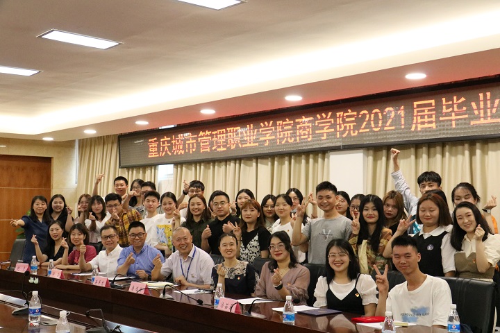 欢送会上,商学院副院长邱云宣读 2021年重庆市优秀毕业以及学校优秀毕业生表彰文件,并为优秀毕业生代表颁发了证书。党总支副书记唐鸿铃宣读了《重庆城市管理职业学院关于聘任高金圆等258名学生为2021届毕业班校友联络员的通知》,并为校友联络员代表颁发了聘书。商学院2021届毕业生共855人,来自7个专业,会与领导为毕业生代表颁发了毕业证书。