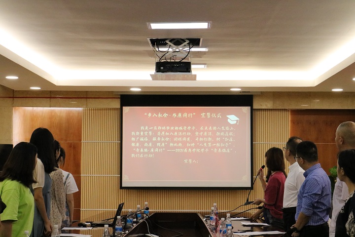 最后,全体与会毕业生一起庄严宣誓“步入社会· 与廉同行”。随着一首《纪念》悠扬的旋律在会议室响起,2021届毕业生欢送会也迎来了尾声,让我们记住这值得纪念的一天,祝福商学院2021届毕业生,一帆风顺,前途似锦!