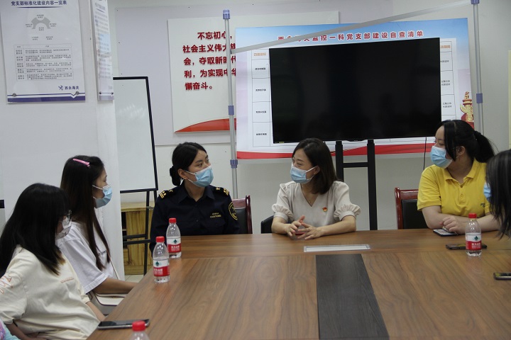 每一个科室都担负着为国把关的神圣职责,在查验现场,更让大家深刻体会到共产党员的奉献、责任与担当。西永海关监控一科党支部,这是一个荣获全国海关基层党建示范品牌的团队,该科承担西永综保区进出货物、运输工具的查验通关、检验检疫监管,以及卡口、围网巡查,视频监控等管理工作,同学们在党建活动室、业务研判室、查验平台外驻足参观,讲解员通过一张张图片、一桩桩事件、一个个人物的生动介绍,使在场青年团员接受了一次党员先锋模范教育的洗礼。