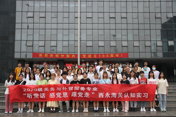 在举国上下庆祝中国共产党百年华诞的喜庆日子里,为增强学生爱党爱国素养,提升学生对行业岗位认知,7月8日,我校关务与外贸服务专业组织2020级学生前往西永海关开展党史学习教育暨认识实习活动。