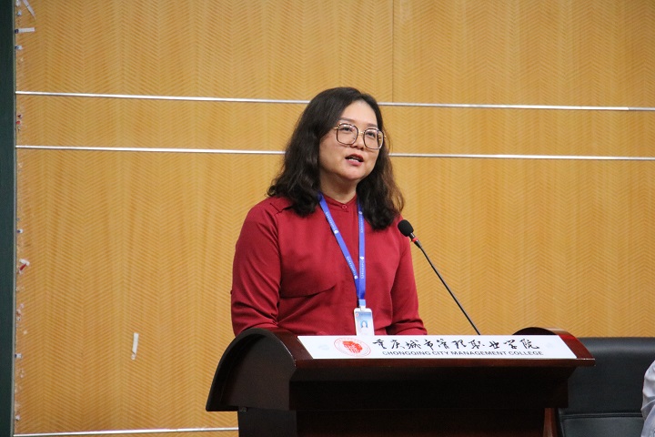 会议第一项议程是商学院副院长邱云发言致辞,欢迎2021级新生来到商学院这个大家庭,并介绍了学校和学院的发展现状,学院的师资力量、专业建设以及近几年学院师生取得的教育教学成果,鼓励同学们树立“终身学习、与时俱进”的理念,希望同学们尽快适应新环境,规划新的人生,掌握新的技能,以成为城管学子为骄傲,脚踏实地,积极奋进,早日成为行业企业需要的新时代人才。