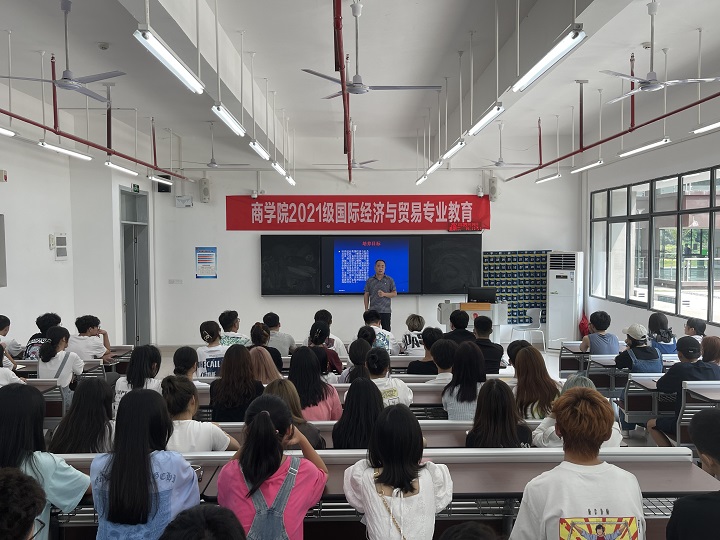 为使新生充分了解所学专业,有效的规划和开展专业学习,明确大学学习目标, 9月14日下午,国际经济与贸易专业于致用楼C104对2021级国贸专业新生开展了入学专业教育。本次专业教育由专业带头人贾忠会老师主持,重庆市嘉世达国际货运代理有限公司企业代表李维科、毕业生陈巧、商贸协会18届会长沈豫婷、全体专任教师以及全体国贸专业2021级新生参加会议。