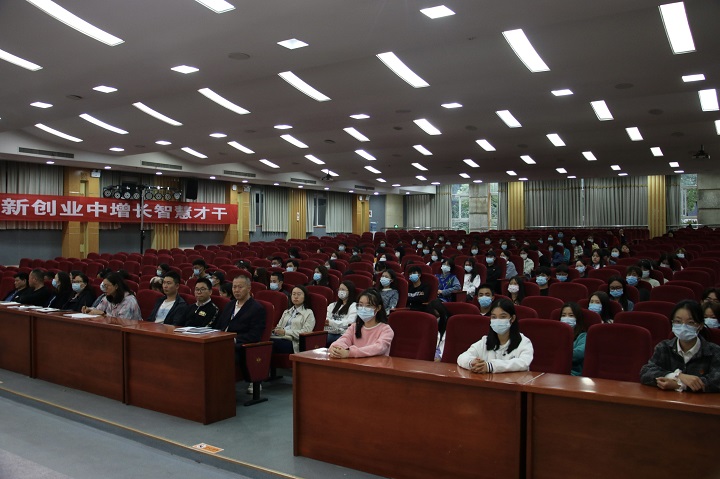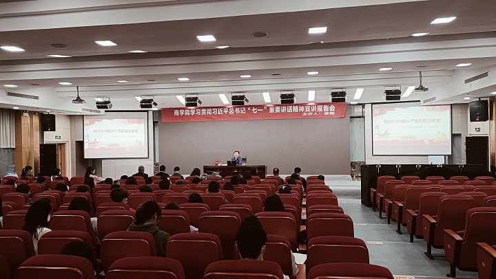 为深入学习贯彻习近平总书记“七一”重要讲话精神,推动党史学习教育深入开展,10月11日,商学院在学术报告厅举行了学习贯彻习近平总书记“七一”重要讲话精神宣讲报告会。宣讲报告由学校党委委员、副校长袁国主讲,商学院党总支书记蒋芹忠主持,学院党总支委员、各专业党支部委员、科级以上干部、教师代表、学生代表120余人聆听了报告。