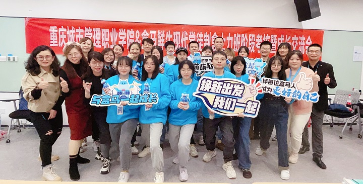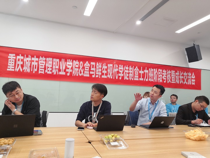 10月19日,现代物流管理专业现代学徒制001期“盒士力班”阶段考核暨成长交流会在盒马鲜生冉家坝总部举行,现代物流管理专业带头人宋伦斌,专业教师段玉明和钟小容,盒士力班负责人谢芳、文静、班主任橙者、各分店店长及培训部相关老师以及19级“盒力士”班13位同学参会。