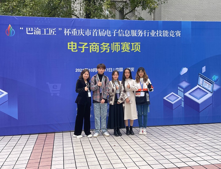10月17日,由重庆市商务委员会、重庆市人力资源和社会保障局、重庆市教育委员会主办的“巴渝工匠”杯重庆市首届电子信息服务行业技能竞赛电子商务师赛项顺利举行。全市共83名学生和32名职工参加比赛。商学院跨境电子商务专业翁文娟、孟灵两位老师,带领张小雨、颜霆、曲曲三位同学前往参赛。
