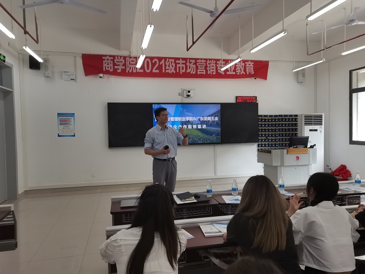 广东坚朗五金制品股份有限公司人资中心部长叶利骐、广东坚朗五金制品股份有限公司人资中心专员赵帅,市场营销专业教师、辅导员、19级坚朗营销班学生助奖学金获得者代表和2021级市场营销专业全体新生参加会议。会议由教研室主任赵祁主持。