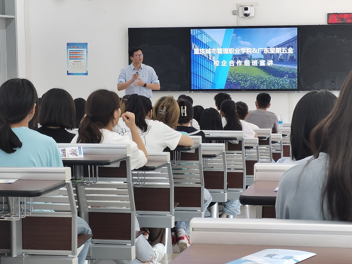 19级坚朗营销班学生助奖学金获得者代表祝连梅通过线上与师弟师妹们分享了大学的生活和学习心得,以及工作、创业的成长过程和收获。在入学教育大会上广东坚朗五金制品股份有限公司人资中心部长叶利骐介绍了坚朗集团的情况,为激励2021级的新生,在入学教育大会上还进行了广东坚朗订单班奖、助学金政策的宣讲。