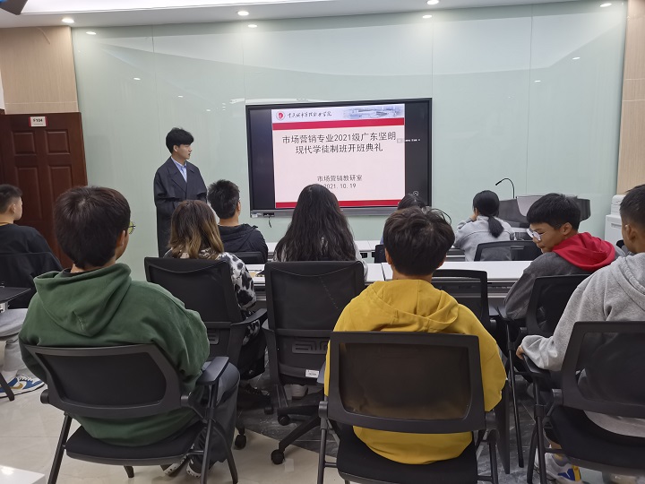 为进一步加强产教融合、促进校企双主体育人工作。10月19日,市场营销专业2021级广东坚朗现代学徒制班在新媒体营销实训室举行开班仪式。广东坚朗五金制品有限公司人力资源负责人冯国庆、市场营销专业带头人武晓平及现代学徒制班同学近30人参加活动。
