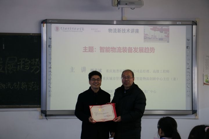 2021年11月30日下午,我校现代物流应用技术推广中心(教育部协同创新中心)邀请重庆旭普科技有限公司高级工程师、学校智能物流创研中心主任(兼)谢贵斌总经理,为现代物流管理专业2020级、2021级300余名同学在敏学楼D605举办了一场物流新技术讲座:智能物流装备发展趋势。
