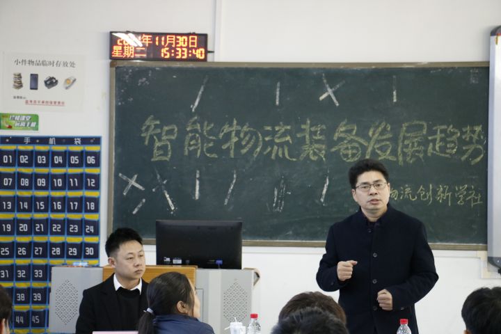 谢总全面系统介绍了配送中心、仓库等场景的物流装备种类及功能,并相同学们分享了机器人的产生、分类及应用等知识。公司智能物流规划工程师袁满,还为同学们介绍了物流机器人的技术参数及未来发展趋势。