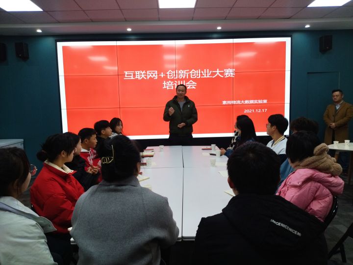 2021年12月17日,商学院在索尚物流大数据实验室召开“互联网+大学生创新创业”大赛院级选拔和培训工作会议。会议由现代物流管理专业教师安小风主持,商学院教师宋伦斌、熊德章、王雅蕾、曾渔渔以及来自现代物流管理专业、连锁经营与管理专业等20多人参加了此次会议。