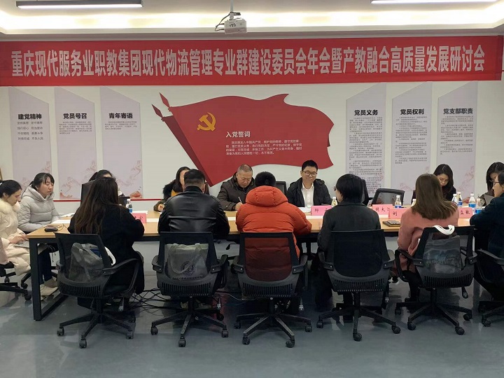 12月22日,重庆现代服务业职教集团商贸流通专委会2021年会召开之际,商学院通过线上线下相结合的方式同步召开现代物流管理专业群建设委员会年会暨产教融合高质量发展研讨会。