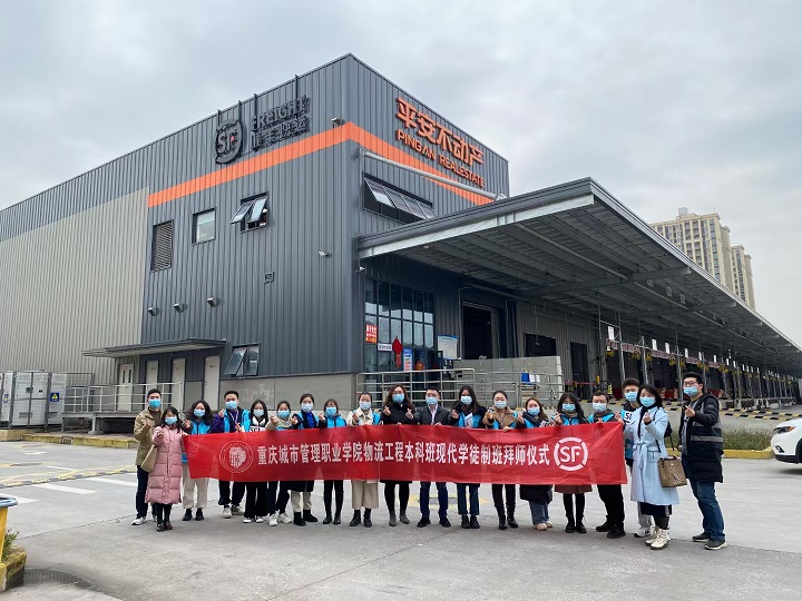 11月23日,现代物流管理专业教研室岳一姬,黄莉、刘柳、物流工程2001班辅导员申书炜和物流工程2001班学生赴重庆顺丰快运参加现代学徒制班拜师仪式。