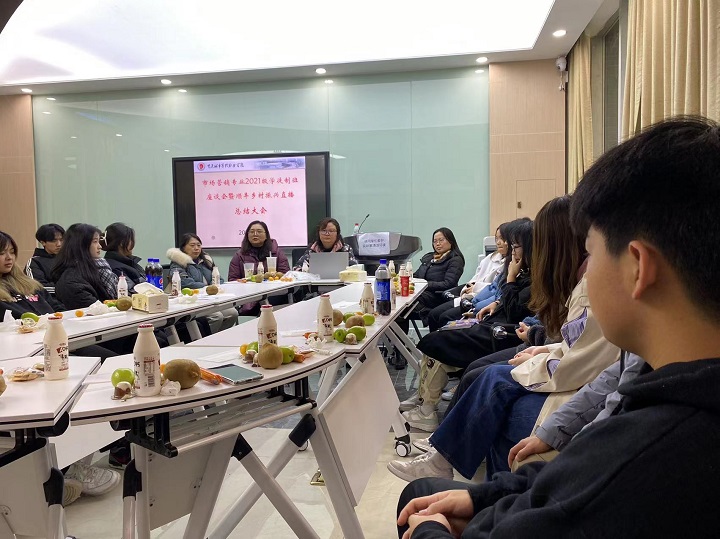 接着,市场营销专业带头人、党支部书记武晓平总结讲话。她对同学们在本次直播活动中的表现给与充分肯定,希望同学们今后更加积极主动地参加活动中,在实践中锻炼和成长。通过校企联合真实项目驱动实境育人这是学徒制人才培养的精髓所在。她还讲到本次活动中教师党员和学生积极分子踊跃参加活动,利用专业优势助农增收,助推乡村振兴,发挥先锋模范带头作用。最后,她提醒同学们,临近期末,抓紧时间认真复习,以优异的成绩回报家人和社会。