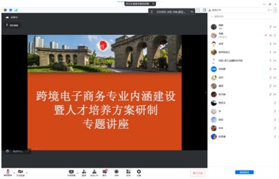 3月24日下午2点,商学院通过线上会议形式开展了跨境电子商务专业内涵建设暨人才培养方案研制专题讲座。本次讲座邀请了浙江金融职业学院国际商务学院副院长肖旭主讲,商学院副院长(主持工作)邱云、副院长牟艳红,跨境电子商务专业、国际经济与贸易专业和商务英语专业相关教师参加了此次会议。