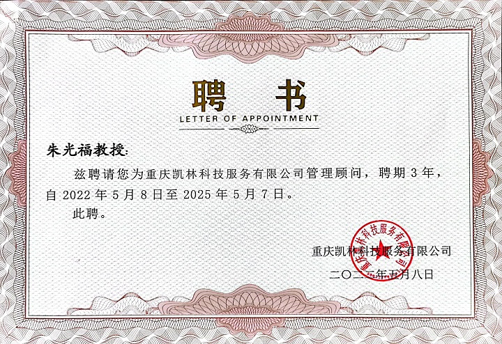 2022年5月10日下午,我校教育部协同创新中心现代物流应用技术推广中心主任朱光福教授受聘为校企合作单位重庆凯林科技服务有限公司管理顾问,主要利用课余和节假日时间参与公司的标准化建设、制度建设和促进公司业务降本增效等工作,并积累专业教学所需的实践经验。公司总经理柯钊祥先生为朱光福教授颁发了聘书。