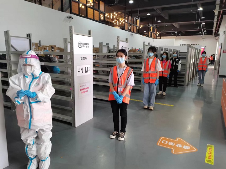 演练过程严格按照相关疫情防控要求进行,发现可疑快件,第一时间报到基地负责人,基地负责人使用扩音器,让基地所有人员原地制动,所有快件原地封存,基地立即封闭。基地负责人迅速向学校疫情防控部门进行详细报告。并进行可疑快件的溯源工作。